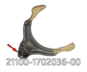 21100-1702036-00 - вилка V передачи ВАЗ 2110-12, 2113-15, 1117-19, 2170-72, 2190-92. От 21080-1702030-00 отличается лыской (на рисунке показана стрелкой)