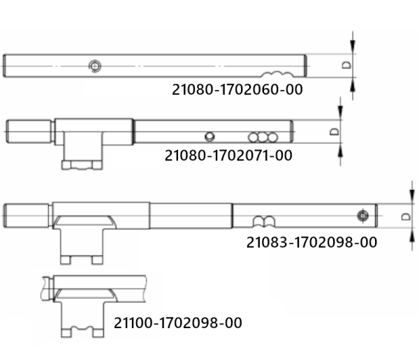 21080-1702060-00 - шток I-II передачи ВАЗ 2108-99, 2110-12, 2113-15, 1117-19, 2170-72, 2190-92. Головка отсутствует, т.к. она выполнена на вилке.