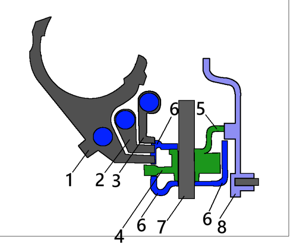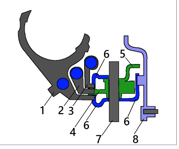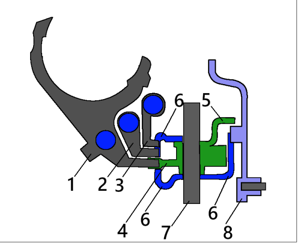 Последние два механизма отличаются друг от друга расположением пружин, возвращающих трехплечий рычаг в нейтральное положение: у «десятого» одна пружина находится на оси трехплечего рычага, а вторая - на дполнительной оси (которая удерживает блокировочные пластины от проворачивания), а у «калиновского» обе пружины находятся на оси трехплечего рычага. «Десятый» и «калиновский» механизмы взаимозаменяемы.