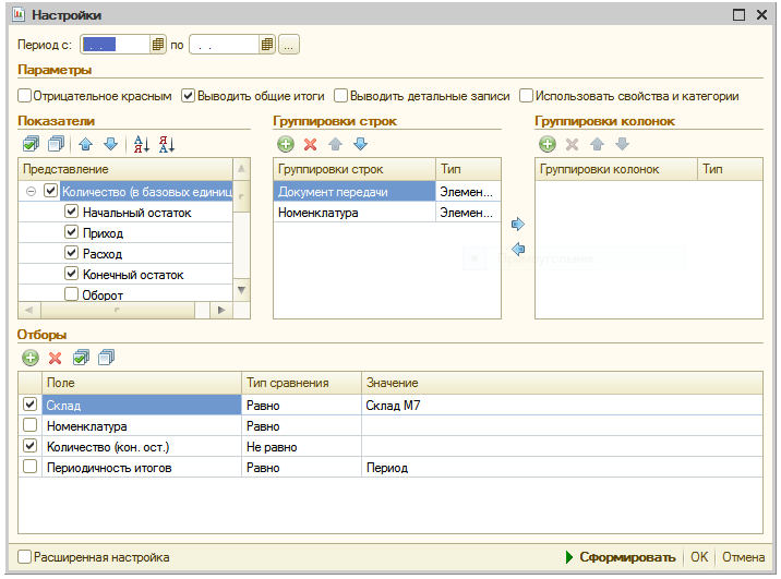 Обратите внимание, что в отчётах не нужно заполнять периоды. Если смущают «хвосты» из очень давних периодов, то нет ничего плохого в том, чтобы использовать в качестве периода текущий год или даже квартал.