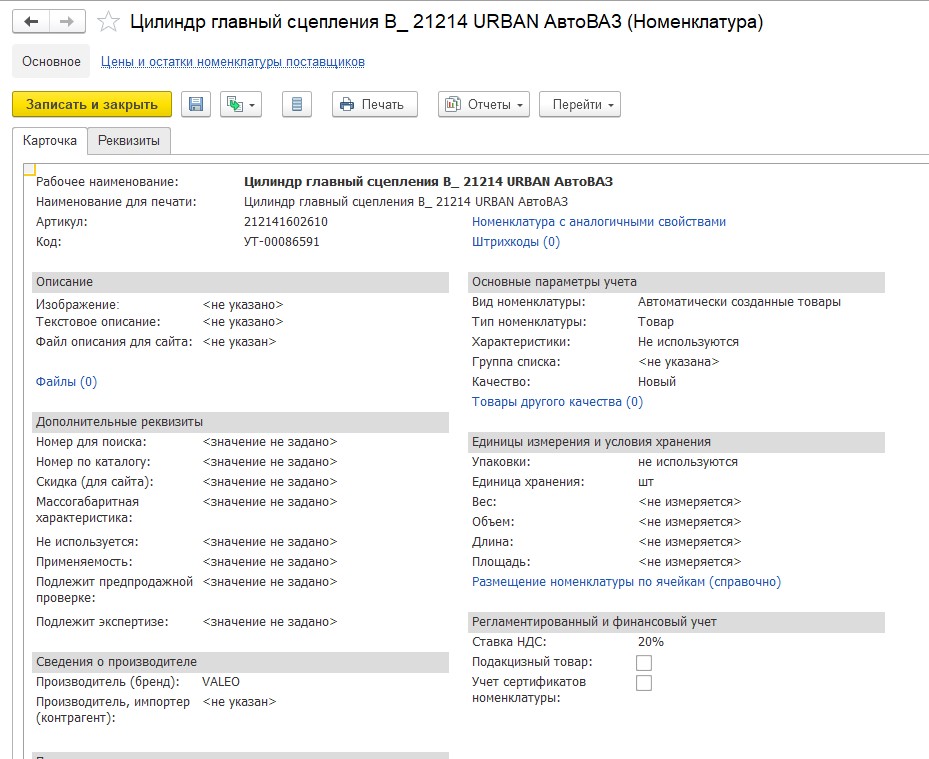 - Для артикулов из каталога ВАЗ имеет смысл привести их к виду 21211602610 вместо 21210-1602610-00;