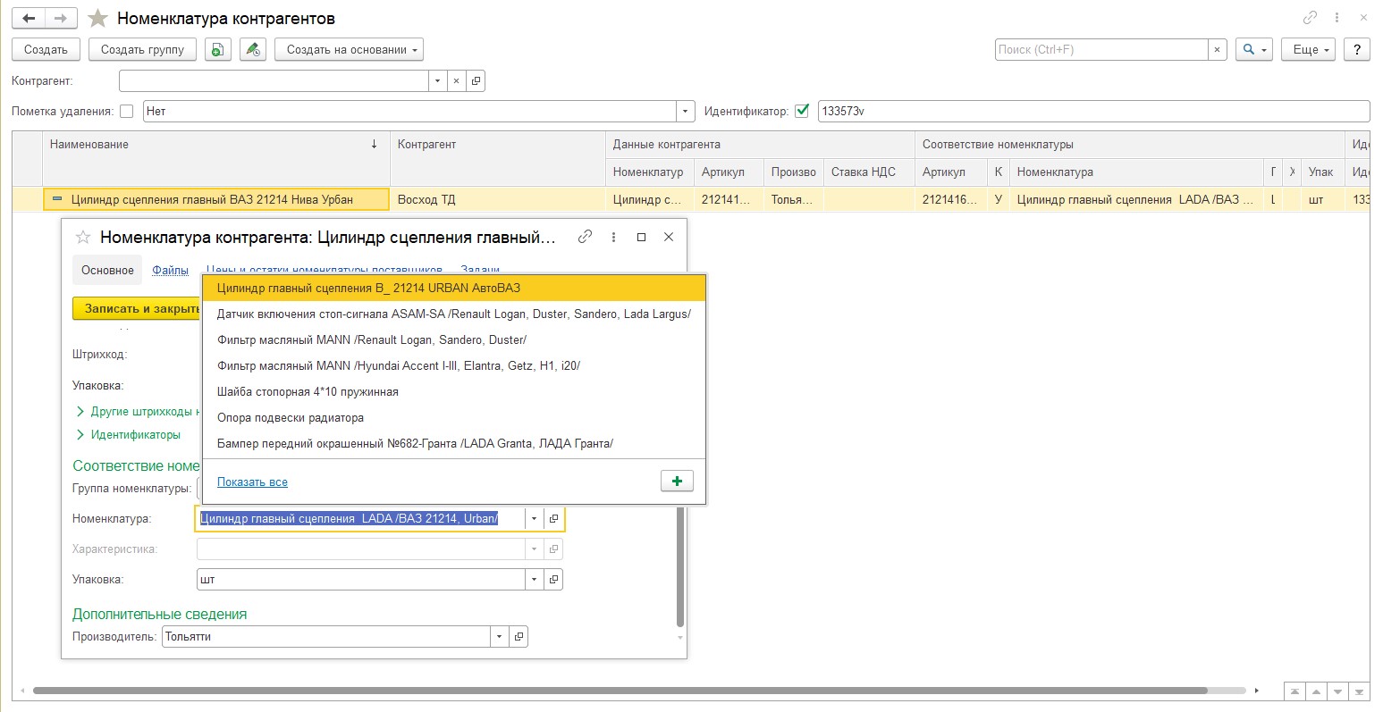 В таком случае в справочнике «Номенклатура контрагентов» необходимо найти эту номенклатуру по идентификатору и из этого справочника уже осуществить привязку.