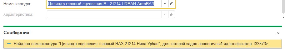 Также, возможна ситуация, когда при попытке привязать номенклатуру контрагента будет выдана ошибка: