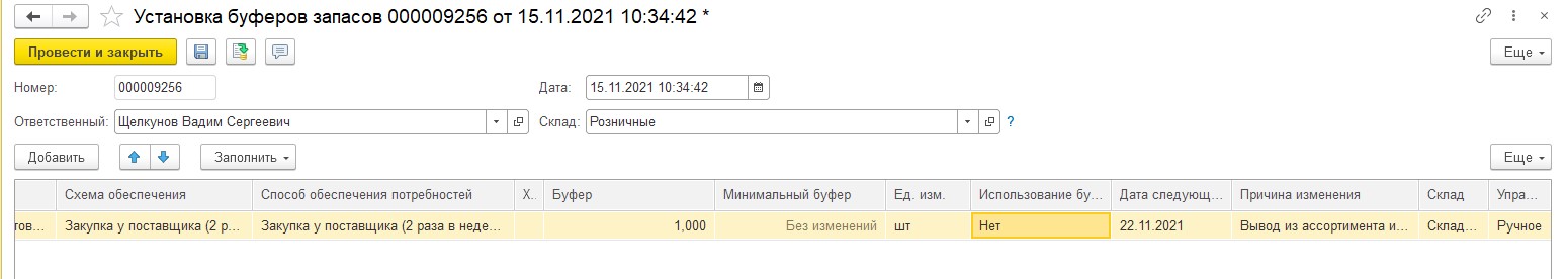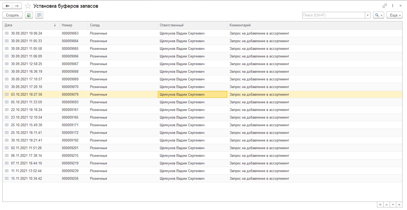 Актуальные заявки необходимо смотреть в списке документов «Установка буферов запасов».