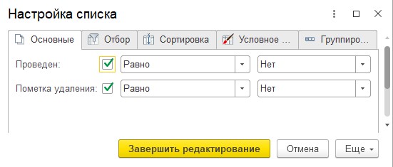 Для того, чтобы отобрать необработанные заявки необходимо для списка установить следующие отборы: