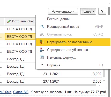 Сортируем по возрастанию колонку «Источник обеспечения».