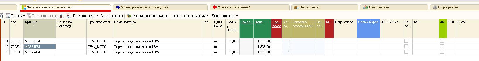 Управление ассортиментом позиционно производится в окне «формирование потребностей»