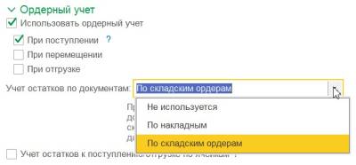 Применение ордеров по видам операций (поступление, перемещение, отгрузка) включается раздельно.